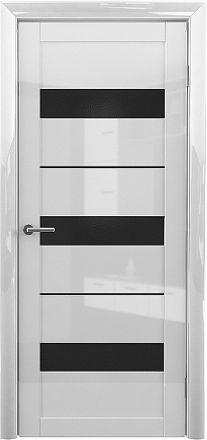 Дверь Прага ширина 80 см Белый глянец Глянец Стекло черное в Карасуке